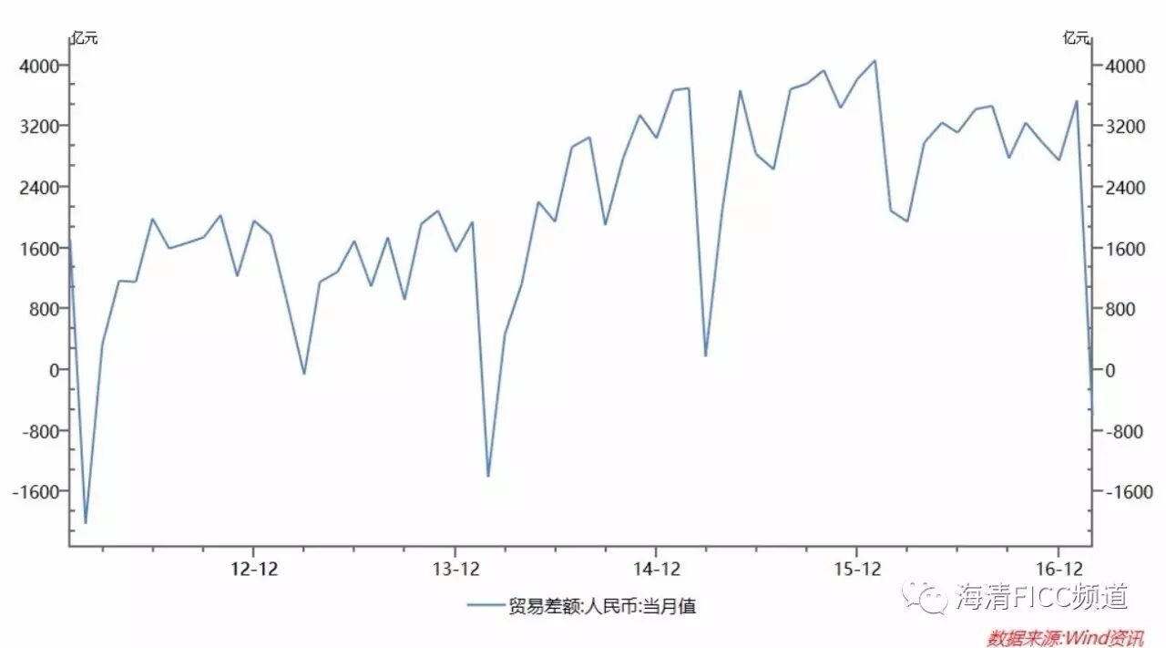 此次2017年春节为1月末,与2012年春节时间几乎相同,因此也同样出现贸易差额的急剧减少甚至贸易逆差,这是季节性因素的正常结果。从历史数据看,春节因素消失之后,贸易差额将恢复正常,可以预计3月大概率会贸易顺差。