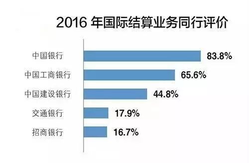 由中国银行业协会与普华永道会计师事务所合作撰写的《中国银行家调查报告2016》正式发布,按照惯例,项目组请银行家对国际结算、贸易融资、同业业务、债券投资、理财业务等14项银行主要业务的竞争力强弱做出评价,并列示出了银行家选出的每项业务竞争力排名前五的银行,中国银行在国际结算及贸易融资业务中竞争力名列榜首!