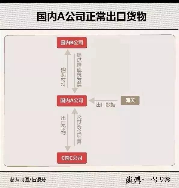 张晓昕以国内一家生产手机的A公司为例,介绍了正常的出口退税流程:首先A公司生产手机,需要购买各种原材料,原材料提供者会出具增值税专用发票;手机出口经过海关,会有报关单;出口到境外B公司,B会将钱款通过银行结汇打到A的对公账户上,产生结汇单;完成上述流程,A公司可拿着报关单、增值税票单、结汇单等到税务部门办理出口退税。