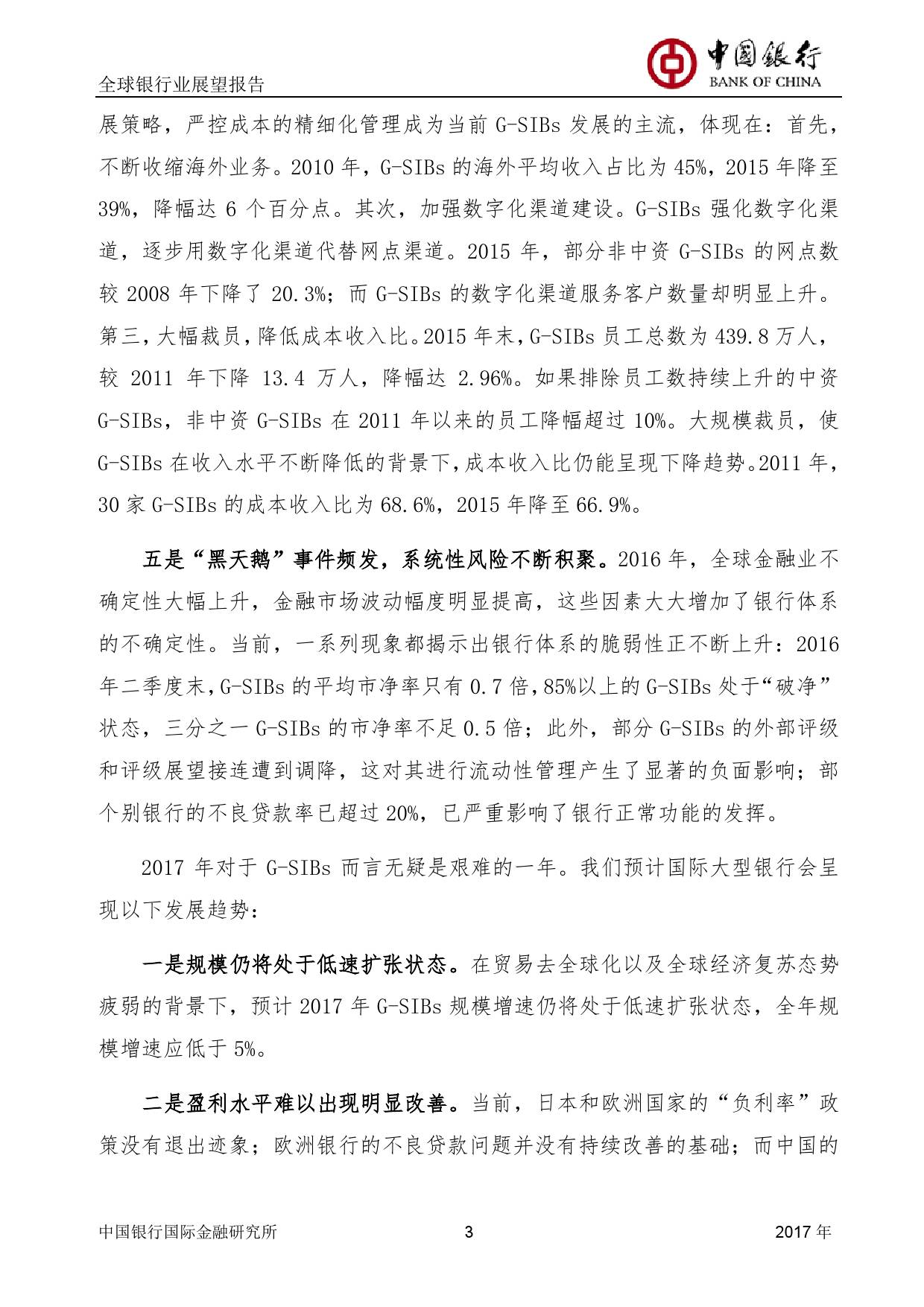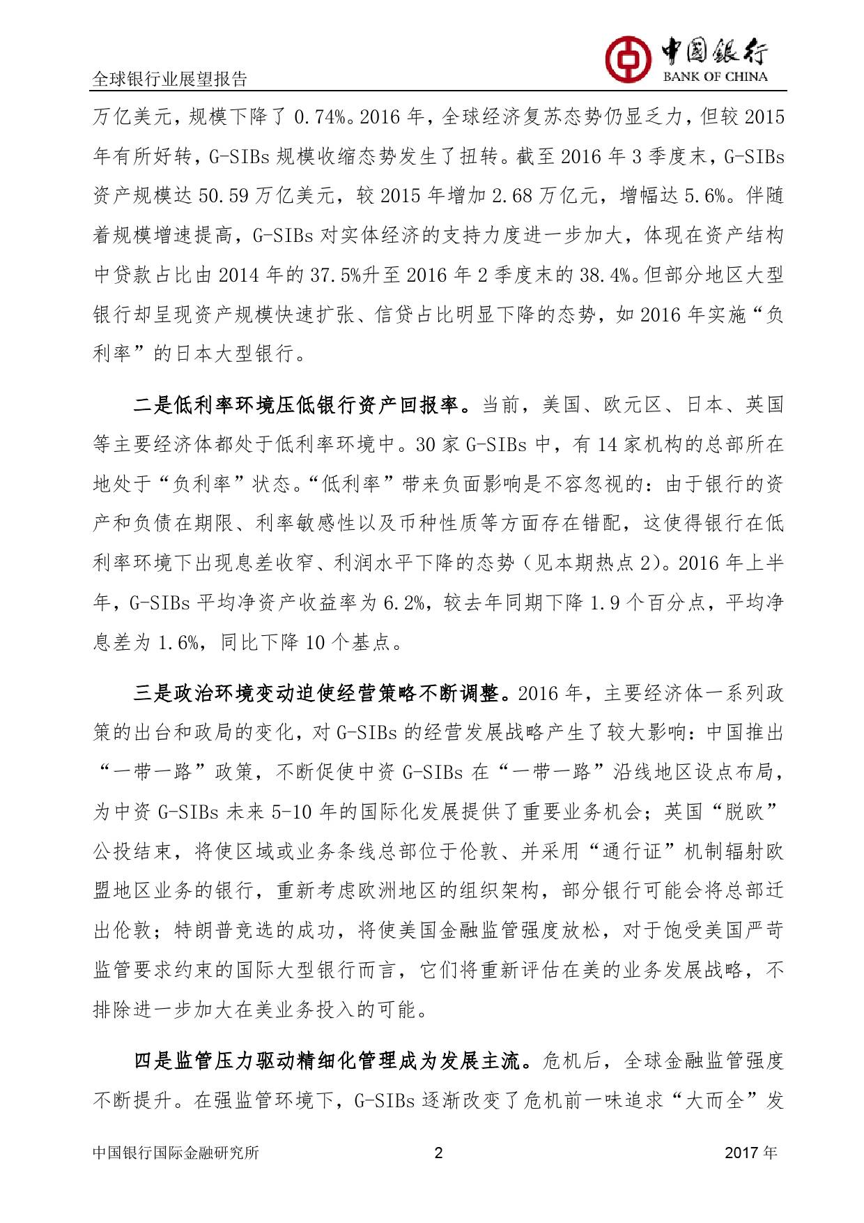 近日,中国银行国际金融国际研究所发布《全球银行业展望报告》,报告指出,2016年全球大型银行规模止跌回升、收益率下降、系统性风险积聚,美国银行业经营业绩持续改善,欧元区和日本银行业经营压力较大,英国银行业面临较大不确定性。
