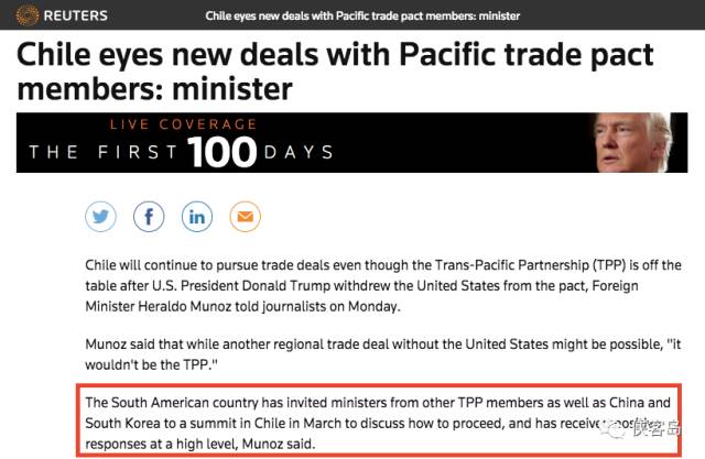 这次智利邀请中国参与本次TPP成员国会议,究其根源,是美国的退出,让TPP呈现“群龙无首”的状态。