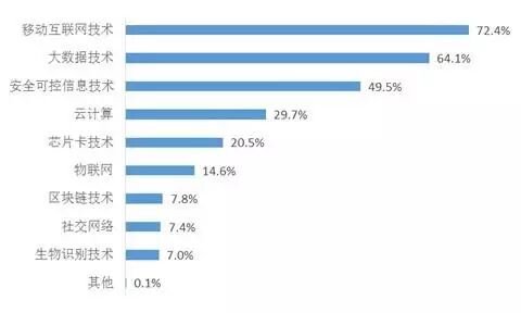 受互联网金融发展浪潮的推动,超过七成(72.4%)银行家选择移动互联网技术作为关注重点,继续位居各类信息技术的首位;在大数据技术日益成熟以及银行业在金融数据方面具备相对优势等因素的影响下,大数据技术同样受到银行家重视,占比达到64.1%,仅次于移动互联网技术。与此相对,银行家对区块链技术(7.8%)、社交网络技术(7.4%)、生物识别技术(7.0%)等关注程度较低,可能的原因是上述技术在银行业务中的应用场景尚不明确、清晰。