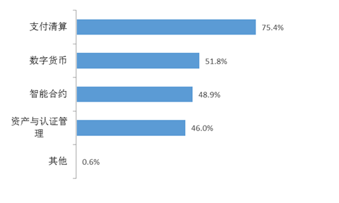 伴随比特币受到市场追捧,其主要技术手段——区块链技术成为国内外广泛关注的热点。相关研究显示,区块链具有去中心化、时序数据、集体维护、可编程和安全可信等特点。区块链技术不仅可以成功应用于类似比特币等数字加密货币领域,同时在经济、金融和社会系统中也存在广泛的应用场景。本次调查将区块链技术应用区分为:支付清算、数字货币、智能合约、资产与认证管理以及其他方面。调查结果显示,75.4%的银行家认为可以用到支付清算领域,51.8%的认为可以应用到数字货币领域,此外认为可以应用到智能合约及资产与认证管理的分别占到48.9%及46.0%。