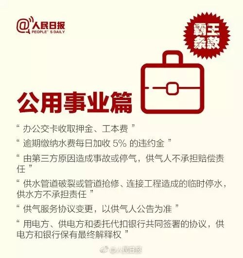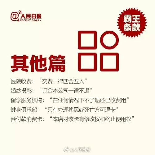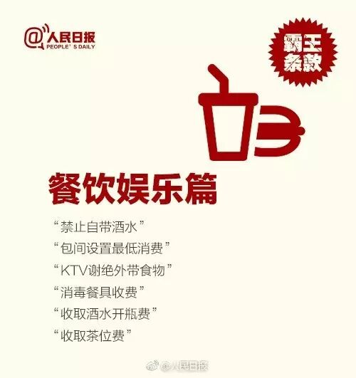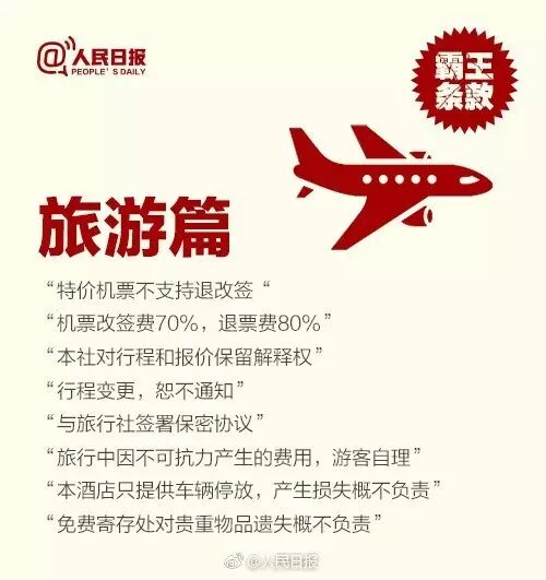 “先签收后验货”“KTV谢绝外带食物”“预付订金不予退还”“特价机票不支持退改签”“本单位保有最终解释权”……貌似约定俗成的规矩,其实都是霸王条款!如遇到,果断打12315投诉,为自己的权益扩散!