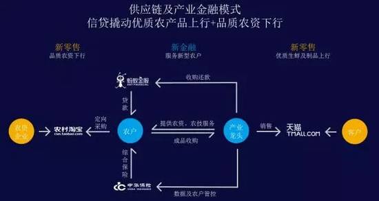 我们就跟金融机构合作,给农户贷款,但并不直接给他,而是直接给了科尔沁采购总部采购种牛给农户,目的是专款专用,降低风险。牛长大了以后科尔沁就会收购,加工成农业产品后可以通过天猫卖给消费者。