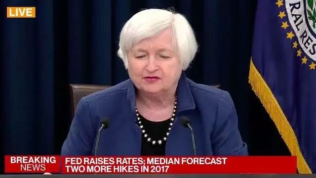 3月16日凌晨,美联储宣布:加息25个基点,联邦基金利率从0.5%~0.75%调升到0.75%~1%。这是仅时隔90天之后,美联储又一次加息。这也是美联储自金融危机以来的第三次加息。美联储委员一致确认2017年将加息3次。
