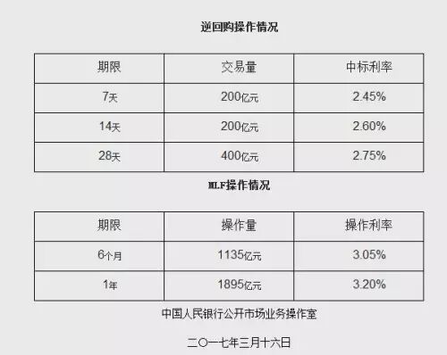 据央行网站消息,2017年3月16日,人民银行以利率招标方式开展逆回购操作800亿元,逆回购利率均较上一交易上调0.1%;并对17家金融机构开展MLF操作3030亿元,共计3830亿元。