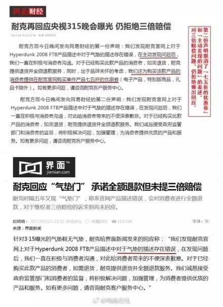 耐克连发声明:承诺全额退款,未提三倍赔偿