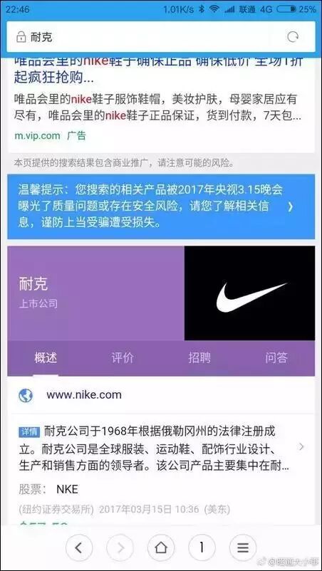 在浏览器搜索页面搜索相关信息后,会出现如下提示: