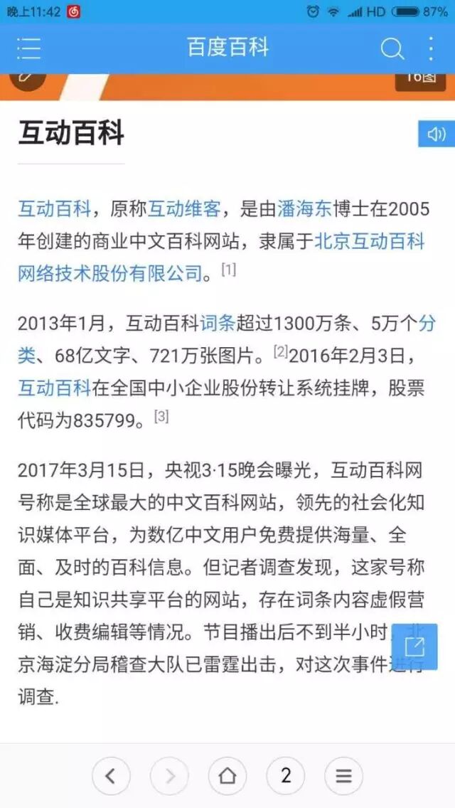 互动百科网号称是全球最大的中文百科网站,领先的社会化知识媒体平台,为数亿中文用户免费提供海量、全面、及时的百科信息。