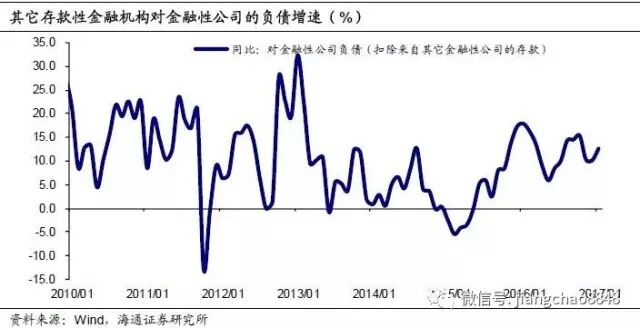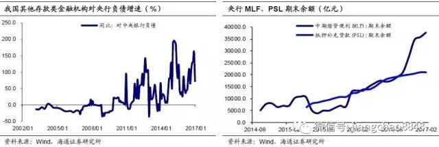 这样导致的结果是,银行对央行的负债近三年也迅速飙升。其它存款性金融机构对央行的负债在14年时不到2万亿,现在已经达到了9.4万亿。而且去年以来央行提供资金利率要低于市场利率,例如7天期央行逆回购利率为2.35%,而同期限的银行间同业拆借利率近期都在2.6%以上,银行间回购利率则更高。所以央行提供的资金要更廉价,银行肯定首选央行发的“红包”,但这一过程银行更多是被动的,且“红包”不是每家银行都能拿到,央行提供资金的量毕竟银行难以控制,所以银行主要还是要借用其它渠道来加杠杆。