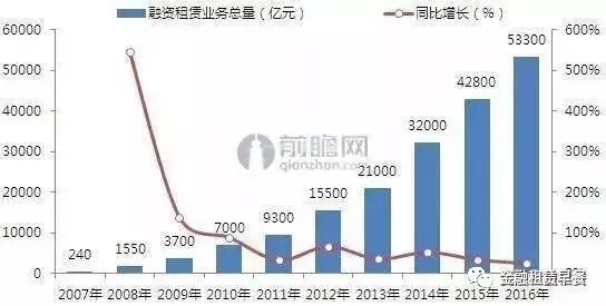 图表1:2007-2016年中国融资租赁行业