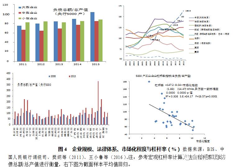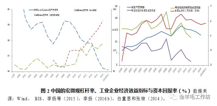 有趣的是,在中国非金融企业杠杆率迅速上升的同时,规模以上工业企业和 私营企业资产负债率却持续下降,至 2016 年 11 月,已分别降至 56.1%和 51.1% 的有数据以来的历史最低点2。如何解释二者之间的背离,进而从中进一步分析 中国的杠杆率结构、水平及其与金融系统性风险的关系,对正确理解债务在中国 经济增长中的作用,有针对性深化供给侧结构性改革,实现中国经济在新常态下 的长远健康发展,具有非常重要的理论和现实意义。