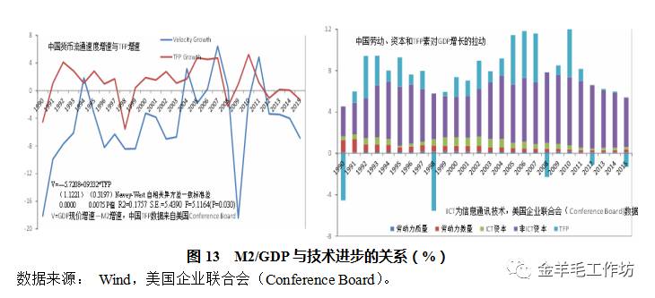 另外,虽然依靠国内债务扩张可提升债务可持续性,延长债务周期,但 M2/GDP 也是存量流量比指标,与资本产出比、宏观杠杆率和债务投资比等指标 类似,在一定程度上也反映了经济运行效率。从这个意义上,M2/GDP 的上升, 意味着经济效率的下降,最终仍将以危机爆发及债务减记和重组等方式收敛,或 在技术进步作用下,导致经济增速快于债务增速,持续支撑高杠杆水平并依靠经 济增长而实现杠杆率收敛。因而,长期来看,债务与 GDP 的比值最终都将回归 合理区间(Reinhart,Reinhart & Rogoff,2015; Reinhart & Rogoff,2015)。