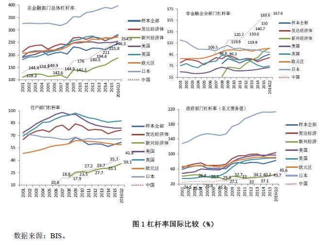 有趣的是,在中国非金融企业杠杆率迅速上升的同时,规模以上工业企业和私营企业资产负债率却持续下降,至2016年11月,已分别降至56.1%和51.1%的有数据以来的历史最低点。如何解释二者之间的背离,进而从中进一步分析中国的杠杆率结构、水平及其与金融系统性风险的关系,对正确理解债务在中国经济增长中的作用,有针对性深化供给侧结构性改革,实现中国经济在新常态下的长远健康发展,具有非常重要的理论和现实意义。