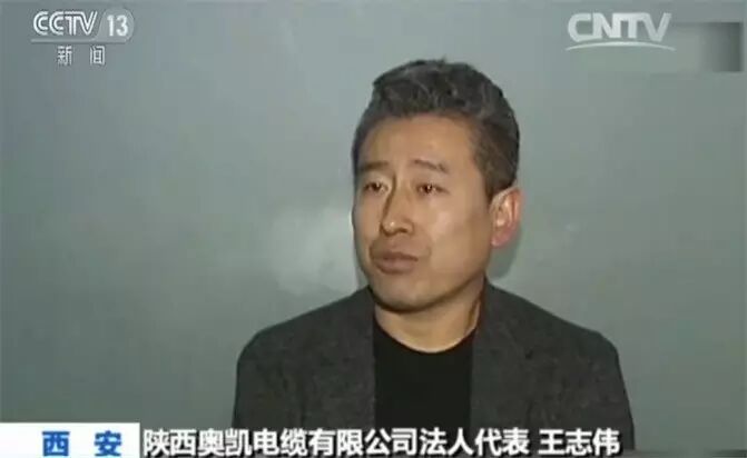 21日,涉事电缆公司法人代表王志伟在接受当地媒体采访时,承认奥凯公司以次充好,供应了不合格的电缆。王志伟还在镜头前跪地道歉,并表示对自己的行为非常后悔,愿意接受法律制裁。