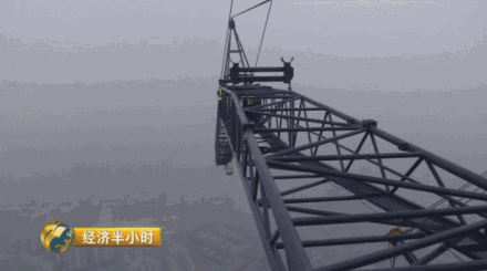 徐彬:我们塔灌整个呈45度的斜坡,所以说,我们不能把东西放在斜坡上面,只能被迫采取第二个。第二个的办法就是空中解体,空中解体,也是非常难。再一个,以小塔吊拆大塔吊。加起来是最棘手,最难拆的塔吊。一旦操作不当126吨重的塔吊失去平衡从近500米的高度砸向地面,后果将不堪设想。但是在徐彬冷静的指挥下,一块接一块的配重最终都被平稳地放至了地面。