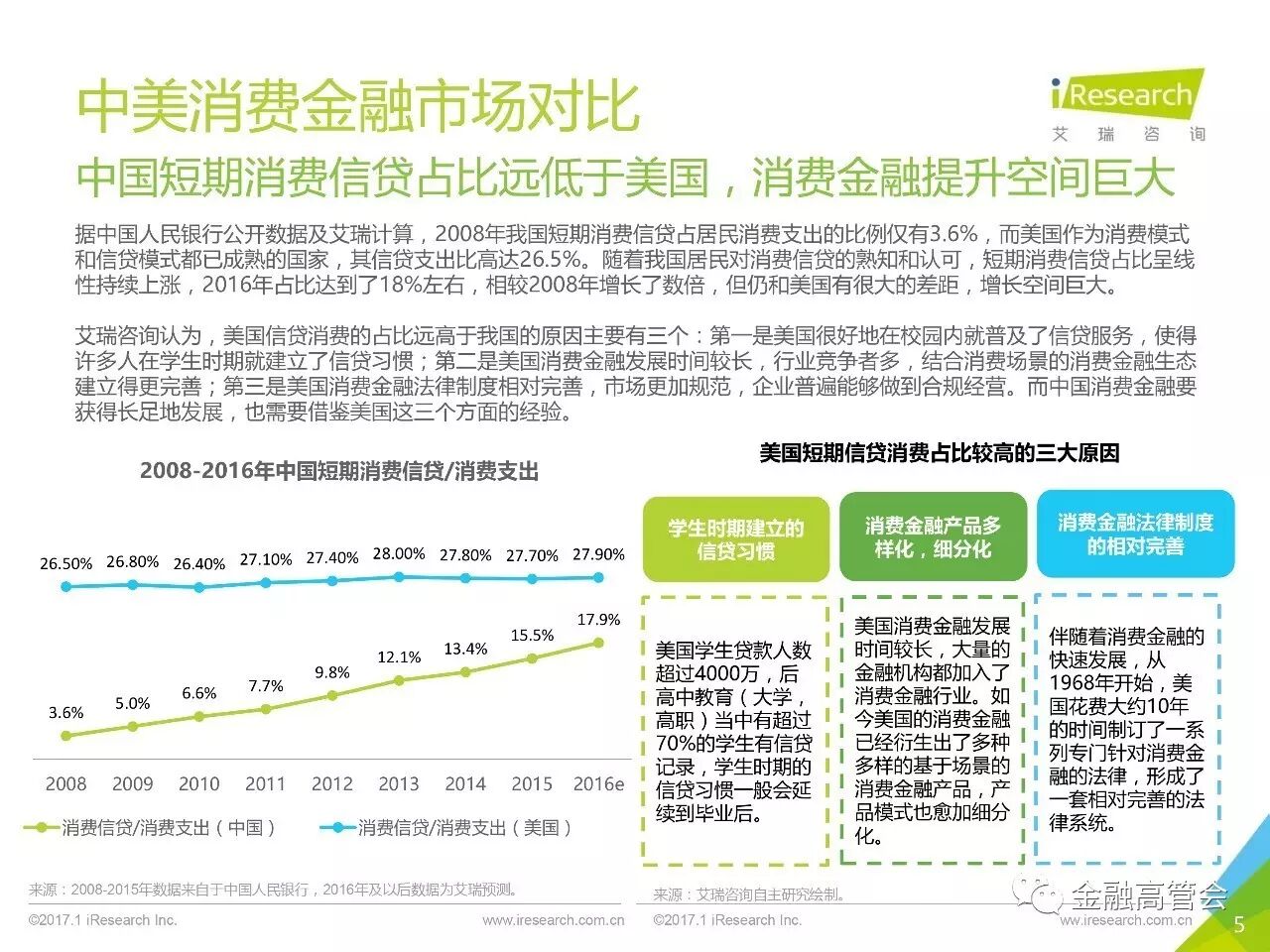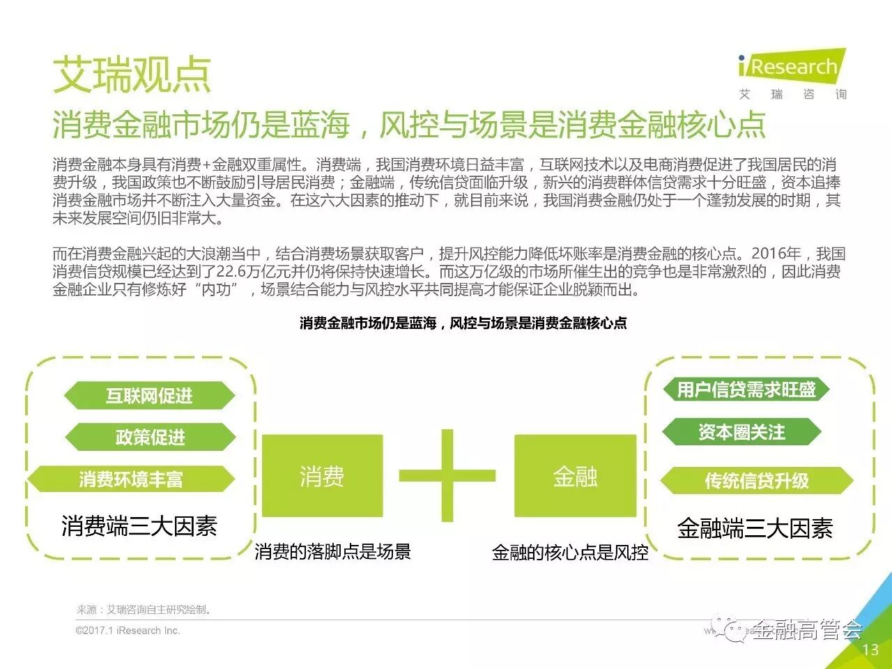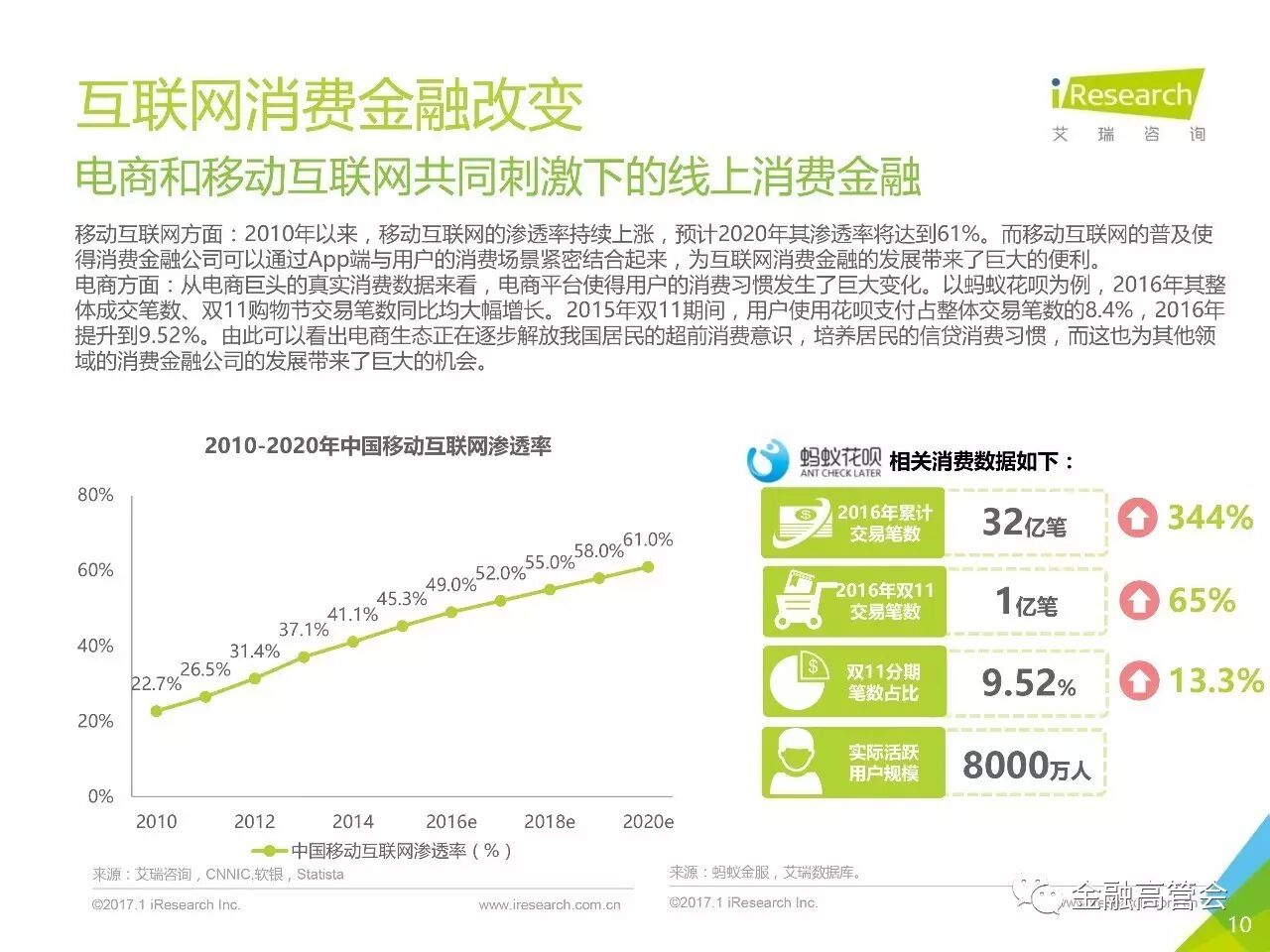 来源:艾瑞咨询2016 年中国消费信贷规模突破了22万亿互联网消费金融从2013年到2016年交易规模从 60亿增长到4367.1 亿年均复合增长率达到了192.1%”温馨提