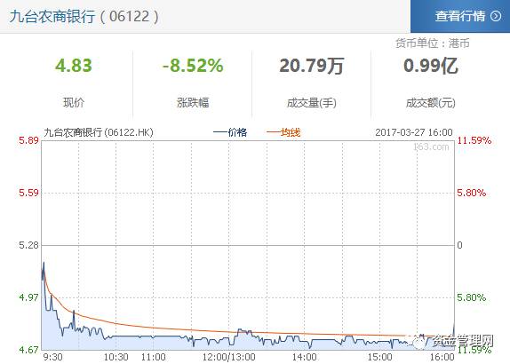 文章来源:中国资金管理网 文/夏文祥今日港股市场,受上周五辉山乳业股价闪崩影响,早市九台农商银行股价急跌10.23%,至4.74港元,创下了上市两个