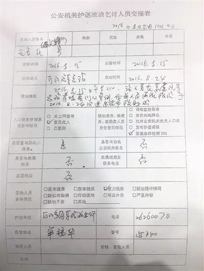 △警方与救助站的交接表