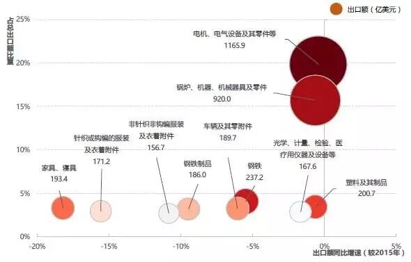 图7. 2016年中国对“一带一路”沿线国家出口额前10位产品