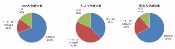 图2. “一带一路”沿线国家GDP、人口、贸易额占全球比重