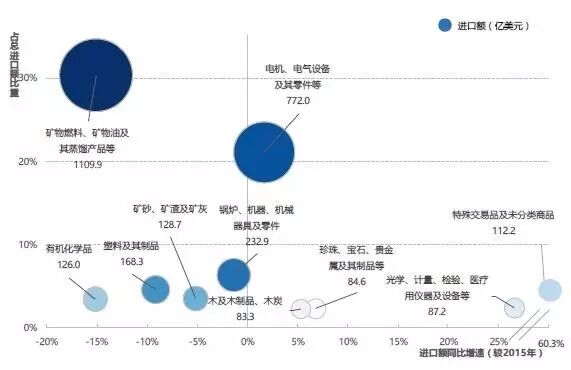 图8. 2016年中国自“一带一路”沿线国家进口额前10位产品