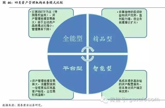 从行业属性看,美国资管机构体现了格局集中、策略差异、技术智能等主要三个特征。我们将对针对北美典型的资管机构发展进行分析。