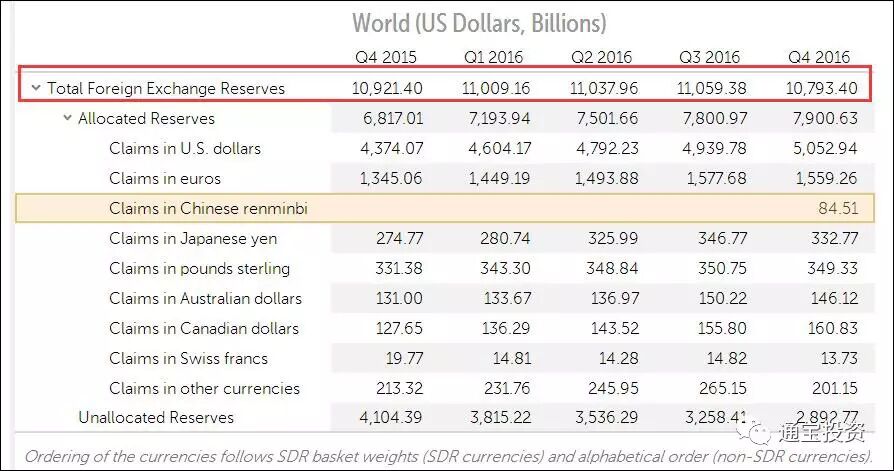 3月31日晚间,国际货币基金组织(IMF)公布了截至2016年12月的“官方外汇储备货币构成”季度数据。该数据扩展了货币范围,首次单独列出了人民币的持有情况。