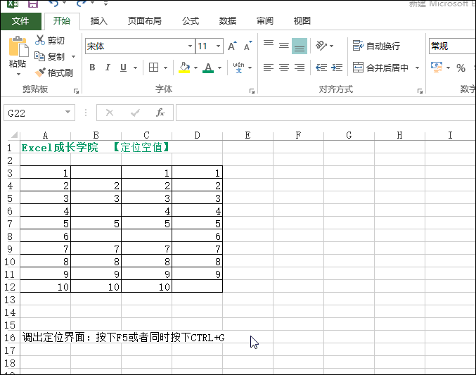 调出定位界面(F5或同时按Ctrl+G)>选择区域>定位条件:空值