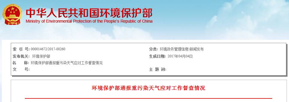 为应对本轮重污染天气过程,4月1日起,环保部集中通报一批环保措施落实不力、存在环保违法违规的企业。