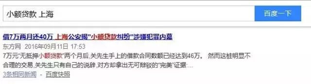 在百度搜索“小额贷款”、“高利贷”等词语,可以搜到一系列相关新闻: