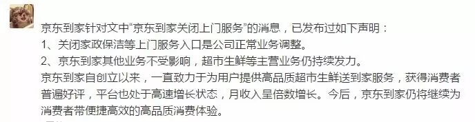 京东到家于今年1月宣布,将于2月10日关闭上门服务。此后,京东到家将仅保留生鲜等商品配送服务,家政等服务将下线。
