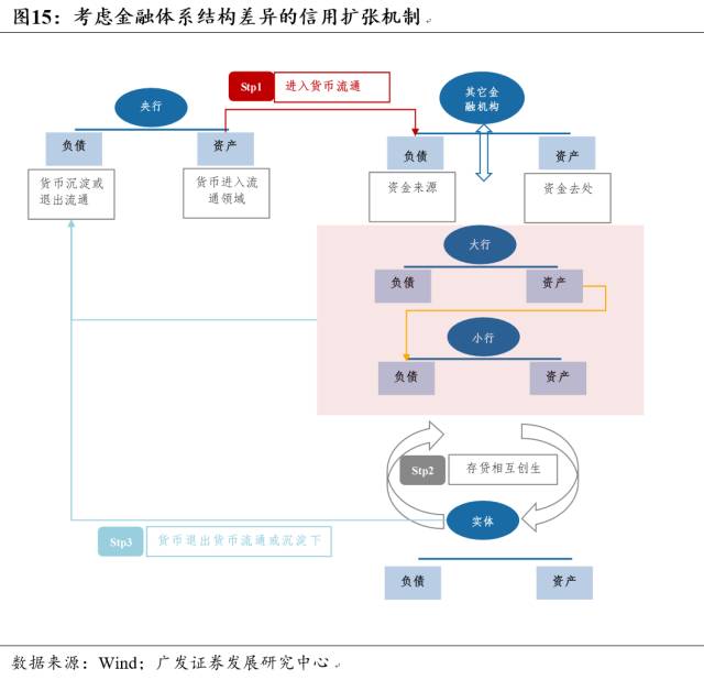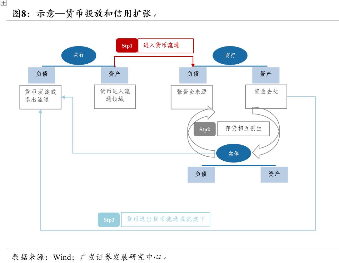 ①金融机构资产负债表扩张,为信用扩张机制重要环节。在信用扩张进程中货币完成流通。