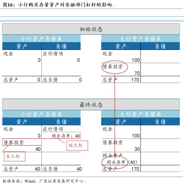 ②回顾信用扩张过程中伴随的金融扩表行为,主要是商业银行利用短期资金(负债扩张),拆放长期资产(资产扩张),即为“以短拆长”的加杠杆过程。