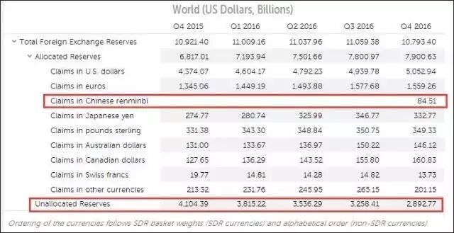 IMF去年10月开始,在官方外汇储备货币构成季度调查中单独列出人民币资产,以反映全球人民币外汇储备的持有情况。