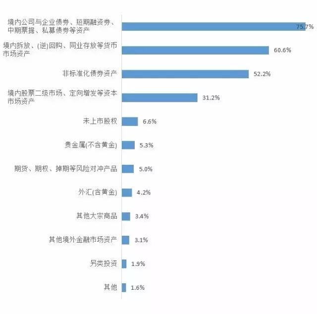 在“资产荒”的大背景下,不断提升寻找优质资产的能力,通过多元化资产配置降低投资风险至关重要。在资管产品投向方面,货币市场与债券市场资产最受青睐。其中,多达75.7%的受访银行家将境内公司和企业债券、短期融资券、中期票据、私募债券等资产作为资管产品的主要投放方向。此外,境内拆放、(逆)回购、同业存放等货币市场资产(60.6%)和非标准化债权资产(52.2%)也受到了较多关注。具体来看,大型商业银行、股份制商业银行和区域性城市商业银行对非标准化债权资产最为关注,选择将其作为资管产品重点投向领域的银行家占比分别为55.8%、64.2%和59.6%,这说明,在经济下行时期,对于大中型银行而言,通过投资非标准化资产来提升投资组合收益率、降低资本消耗的需求依然非常强烈。