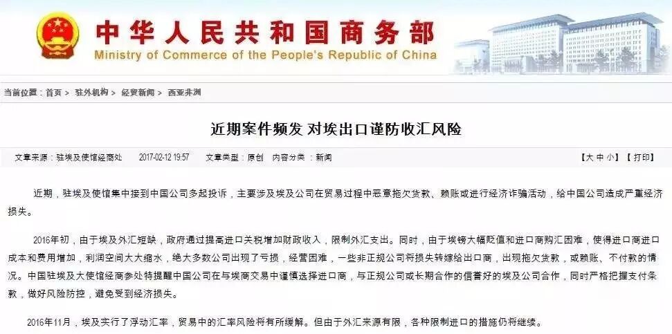 此前,中国商务部也发布警示,近期,驻埃及使馆集中接到中国公司多起投诉,主要涉及埃及公司在贸易过程中恶意拖欠货款、赖账或进行经济诈骗活动,给中国公司造成严重经济损失。
