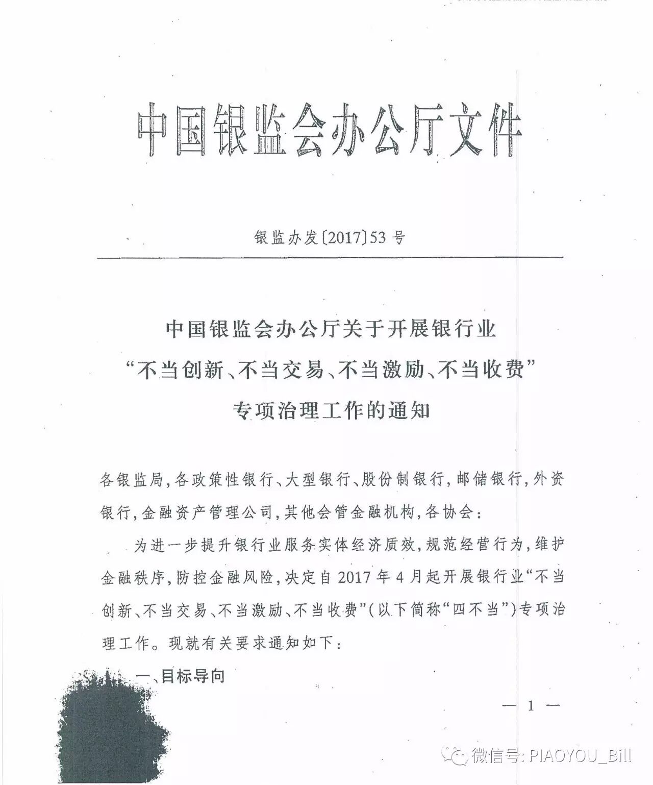 重磅| 银监会53号文整治“不当创新+交易+激励+收费“(附原文)