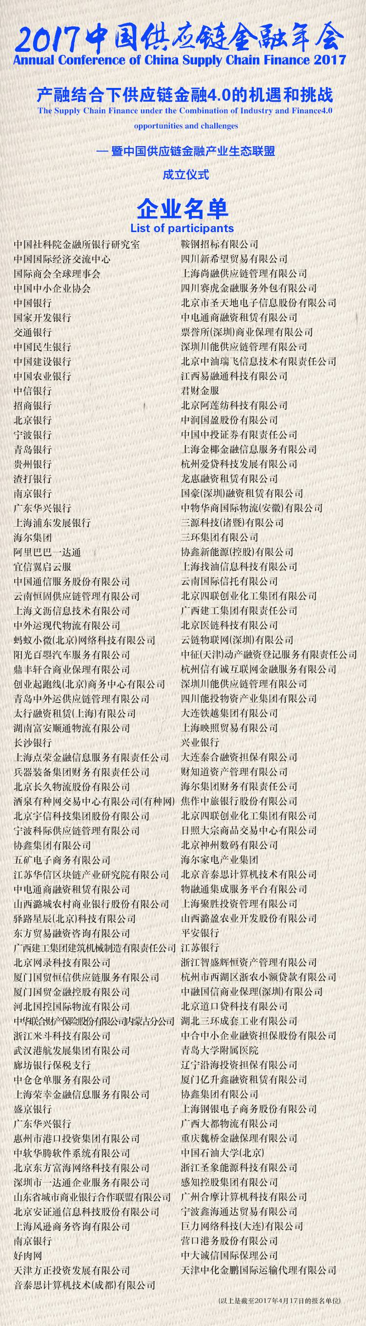 参会名单再次升级| 2017中国供应链金融年会即将开启