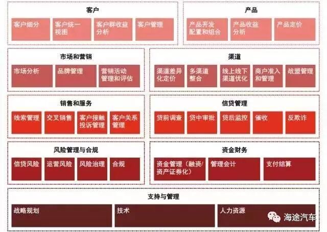 针对上述痛点,我们认为汽车生态系统中的各个参与者都应努力为汽车金融业务开辟新的商业模式。不过,发展汽车金融业务需要有清晰的商业模式和明确的运营模式,需要对商业模式中关键的业务模块和能力有深入的理解。