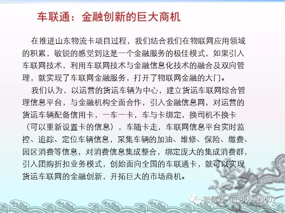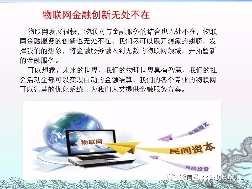 这是一篇超前的研究心得,PPT仅仅是一个提纲,反映的是一个思想,其中提到的车联通卡,有落地解决方案。老王是在2012年前后开始意识到未来中国金融服务将进入物联网时代,产生物联网金融。当时互联网金融已经开始引起广泛关注与研究,老王认为,物联网金融是比互联网金融更具有发展空间和创新活力的领域。随着互联网金融发展,随着物联网发展,随着智慧物流发展,物流网金融在物流领域也大有作为。因此,老王在百度编写了物联网金融词条。并接受2013年第四届中国物联网大会邀请,在这届大会分论坛上发布了“物联网时代金融服务与创新”的演讲。老王的演讲当时得到了创新基金投资的关注,同时演讲中提到的车联通卡商业模式受到关注,临时被邀请参加大会期间投融资路演,在路演中对车联通卡解决方案做了简单介绍并回答了投资机构关注问题,当即有投资机构表示愿意进行投资,并发放了投资意向证书。