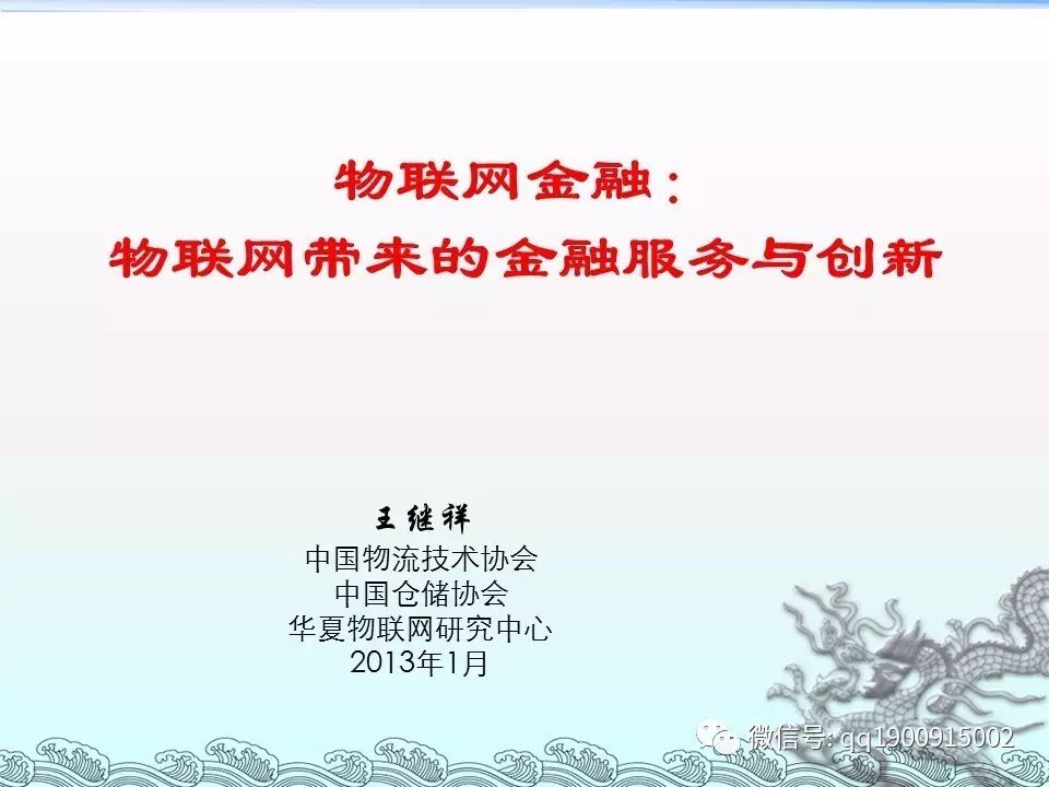 老王2013年后主要精力转向绿色物流、标准化物流和智慧物流研究,关于物联网的相关研究基本不再关注,物流网金融的研究也未再深入。考虑到目前物联网金融创新已经有了创新与发展基础,建议有兴趣创业者可以开始考虑推动这一领域的创新与创业了,因此老王分享出来自己的PPT,抛砖引玉,希望与有志于这一领域研究与创业者交流与分享。