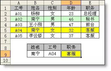 【例3】如下图所示要求,同时根据姓名和工号查找职位。