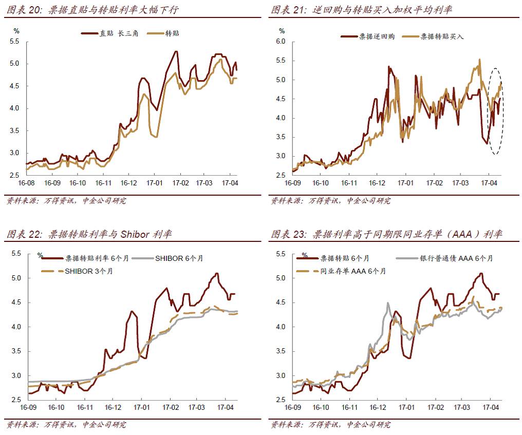 公开市场方面,央行在连续13天暂停后于4月13日重启逆回购;此外4月13日有2170亿元MLF到期,央行未进行续作,而是进行了1100亿逆回购投放和839亿元抵押补充贷款;后一周,央行在4月17日意外投放4955亿元MLF,其中六个月1280亿元,一年期3675亿元;主要意在对冲4月13日到期的2170亿MLF和18日到期的2345亿MLF。考虑到期后,央行公开市场MLF总计净投放440亿元。逆回购方面,过去两周央行公开市场逆回购总计净投放2400亿元,为春节以来最高,表明在银监会加大监管下,央行货币政策并没有进一步收紧,未来资金面面临严峻考核的风险下降。