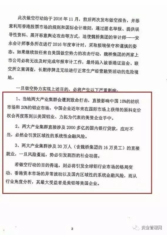 小编翻译下魏桥的声明:1、我不就造个假么。2、境外敌人据此要搞垮我。 3、搞垮我就是搞垮国人,4、如不信,那我借国人的2千亿还不了了,还可能放十几万人来闹点事!5、你们掂量着办吧。