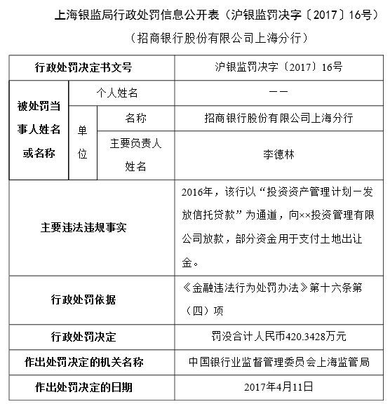 上海银监局重拳处罚某分行借道同业违规放款房地产业
