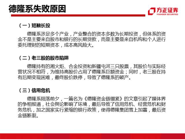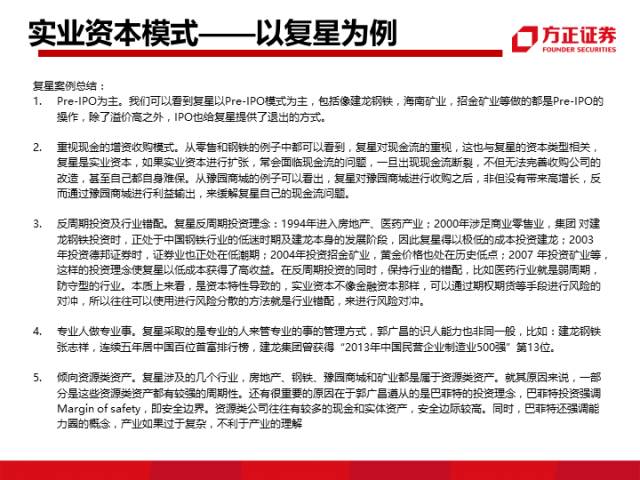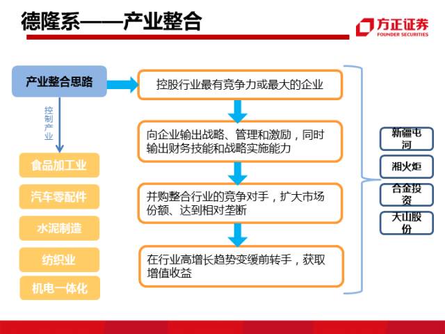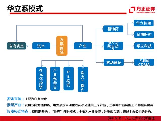 2、产业投资:产业投资类派系一般进入的产业都较集中,相关度高,通常是立足于某一个企业,然后进行同行业横向并购或产业链纵向并购,对整个派系的经营进行产业整合升级,从而成为某一产业中的佼佼者。这类投资是进行实业投资,注重的是长期经营,通过并购实现经营上的协同效应和规模经济,比如说产业上下游纵向并购可以节约谈判议价成本,所以一般对企业的经营业务有较大影响。