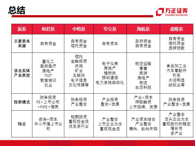 从投资方向上来说,我国的产业并购主要分三大类:财务投资、产业投资和产融结合类投资,我们用以下派系来说明它们的特征。