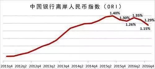 4月28日,中国银行发布2016年离岸人民币指数(ORI)。结果显示,2016年末离岸人民币指数为1.15%,较2016年三季度末下降0.14个百分点。人民币在离岸金融